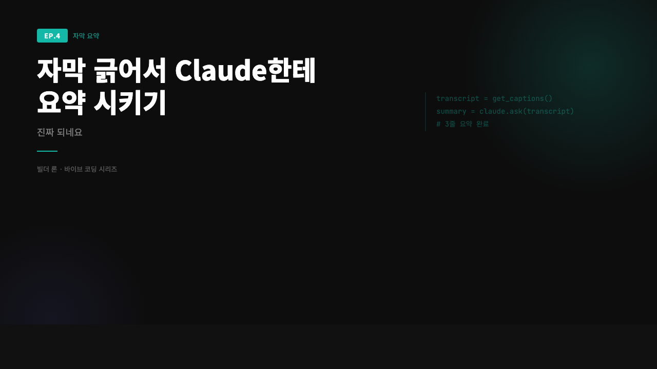 3~5분이면 에이전트들이 자막 추출 + Claude 요약 코드를 짜줘요.